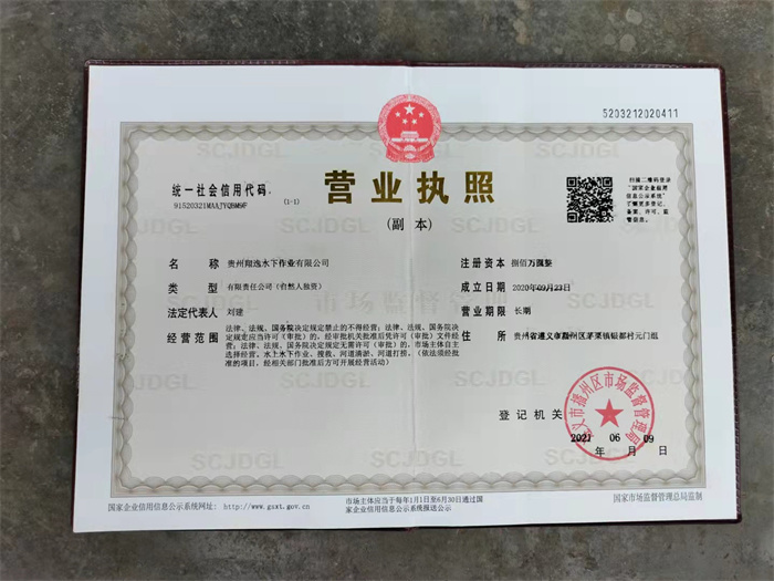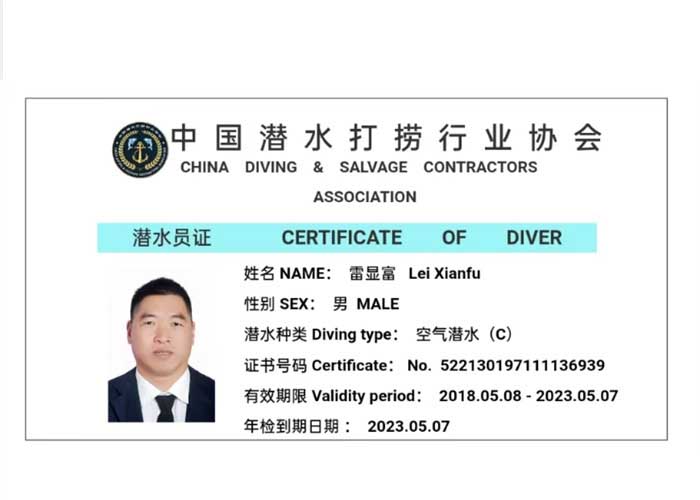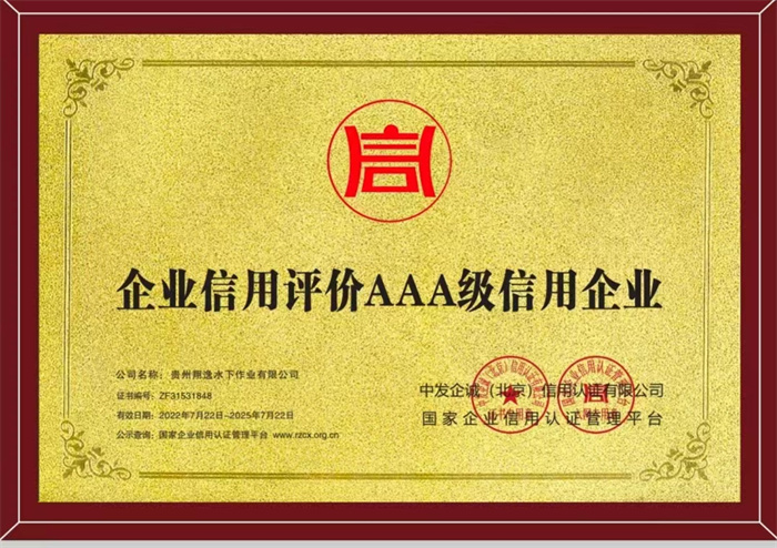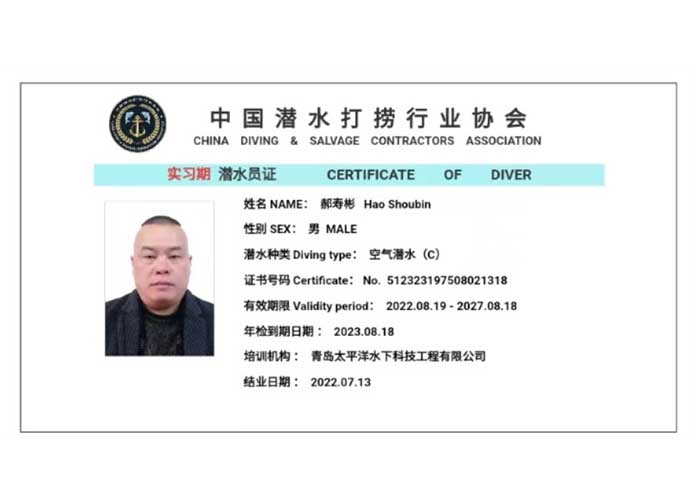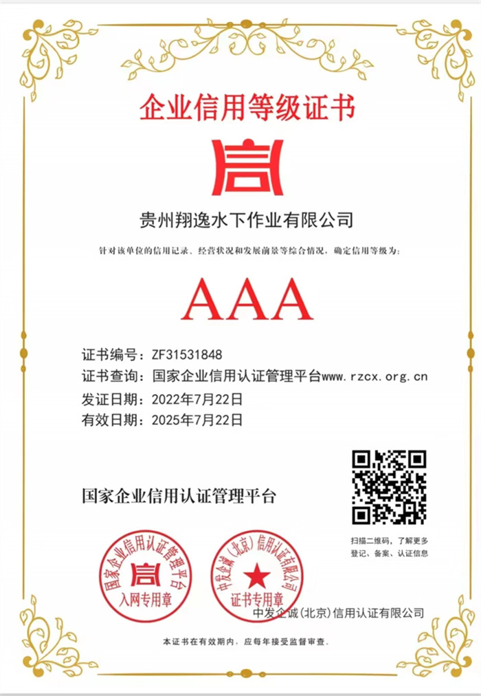 潜水作业机构资质等级证书